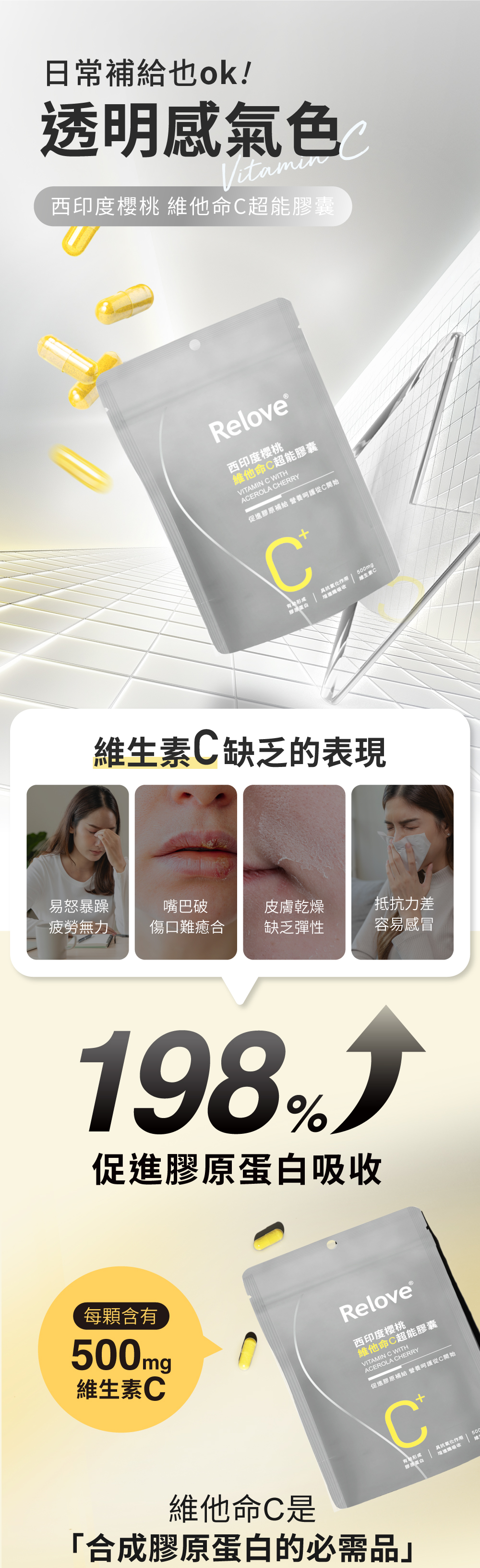 【維他命C膠囊】台灣Relove西印度櫻桃維他命C超能膠囊1包30粒